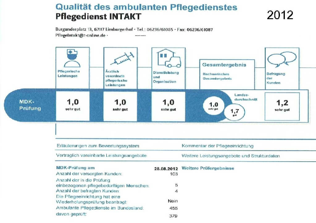 Der Medizinische Dienst der Krankenversicherungen testet jedes Jahr hunderte Pflegedienste und bewertet deren Leistungen nach einem simplem Schulnotenprinzip. Dieser Test ist unabhängig und aussagekräftig. Da wir jedes Jahr aufs neue sehr gut abschneiden, sind wir stolz darauf, Ihnen unsere MDK Prüfergebnisse präsentieren zu können.